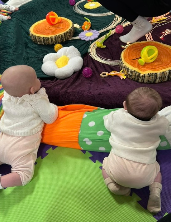 A highly interactive musical class where we focus on babies growing confidence with the big wide world. Encouraging both fine and gross motor skills, teaching body awareness and stimulating your baby's perception of sounds with our fun range of songs and activities. At theme time your baby gets to explore our fun range of bright props and exciting heuristic treasure baskets whilst developing their social skills with fellow Bloom babies! 👶🏽