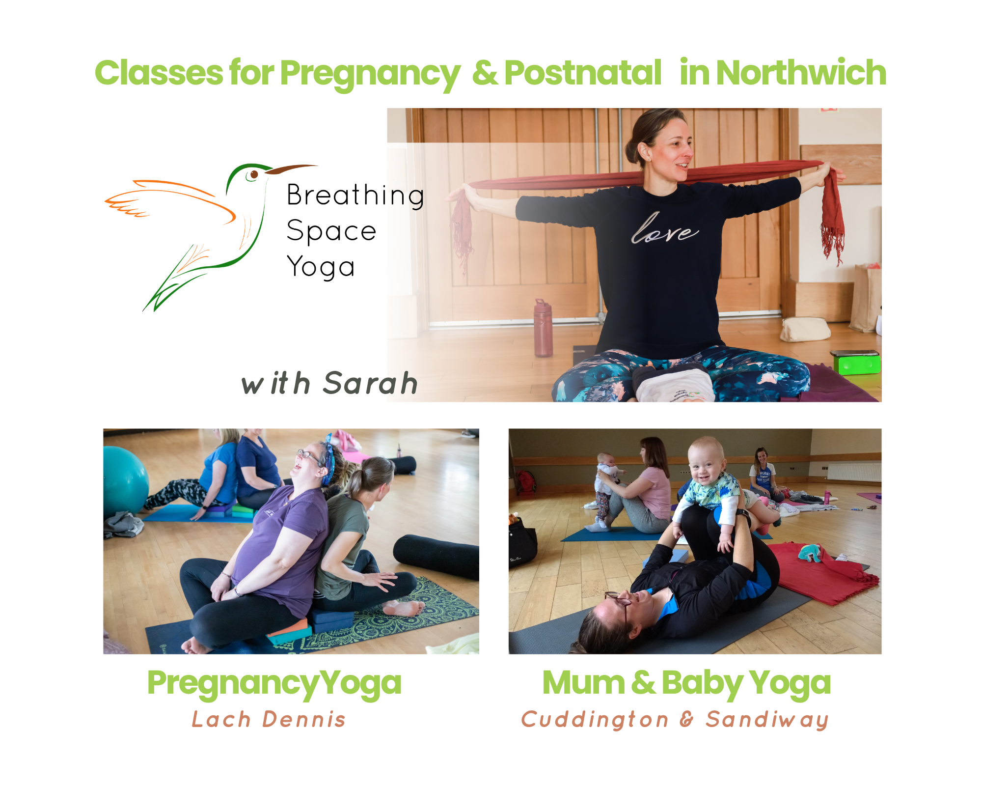 Hi, my name is Sarah, I’m a Birthlight trained Pregnancy, Postnatal and Mum Baby Yoga teacher and I have been teaching antenatal classes and postnatal classes in Northwich since 2013.